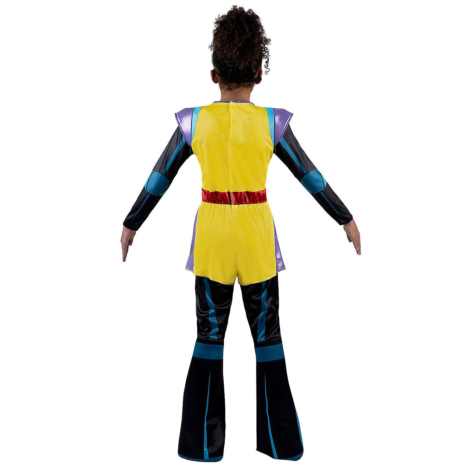 Reclaim the Nightstone in the MARVEL Youth Moon Girl Costume. This officially licensed costume features a graphic design of Lunella Lafayette's moon suit, complete with a special holographic foil on the shoulders and hips. The printed jumpsuit is paired with a fabric mask that includes a mesh interior for comfort and visibility.