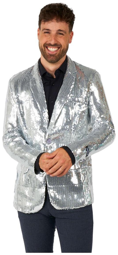 Shiny Silver Sequin Blazer for Party Events Weddings and Festive Celebrations
