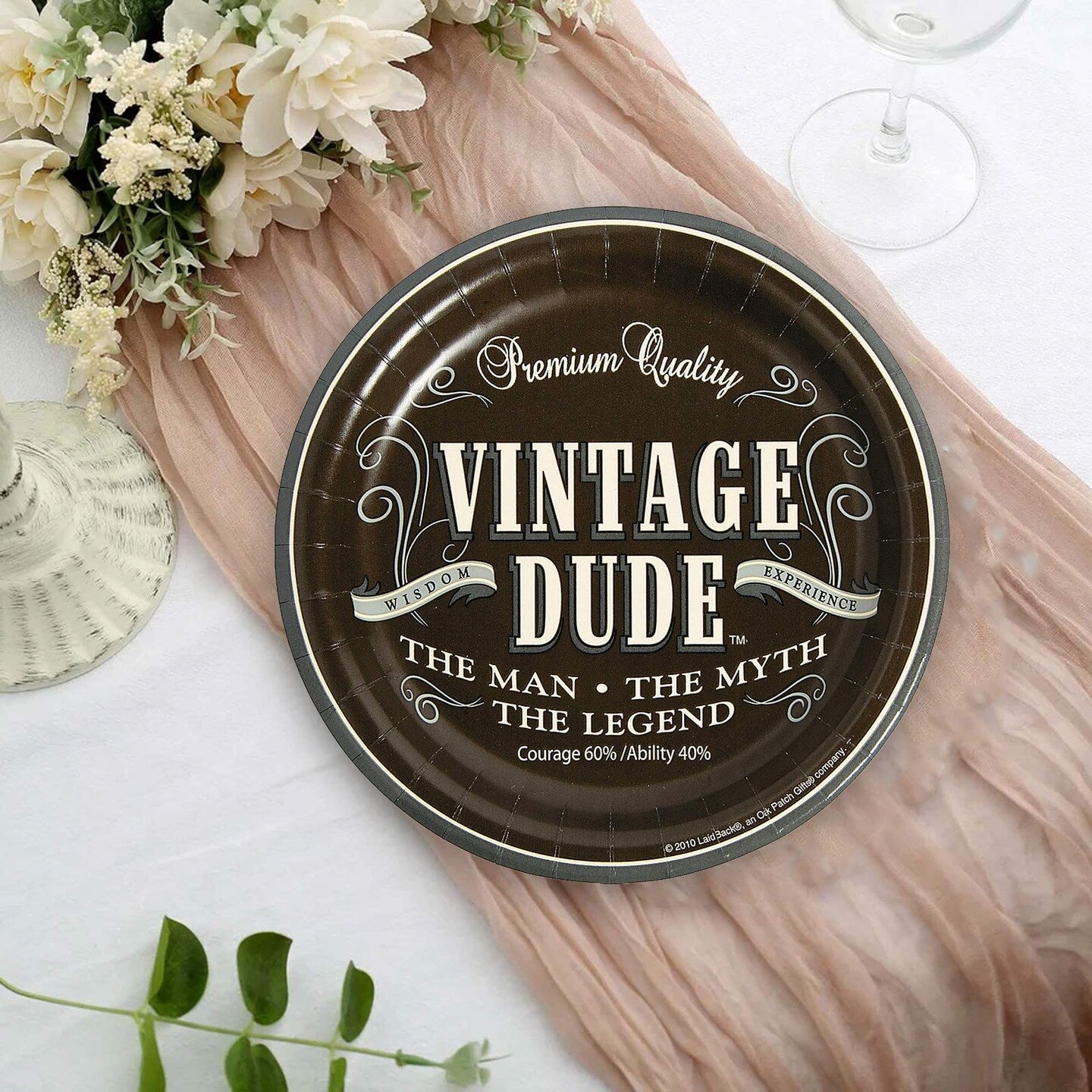 8 Count Vintage Dude Birthday Party Paper Dessert Plates 7 Inch Disposable Tableware for Boys Celebration