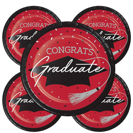 25 Count Burgundy Congrats Grad 9 Inch Round Paper Plates for Elegant Graduation Decor