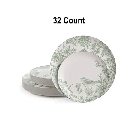 32 Count Meadow Design Paper Plates Combo Set Elegant Disposable Dinnerware 10 inch + 8 inch