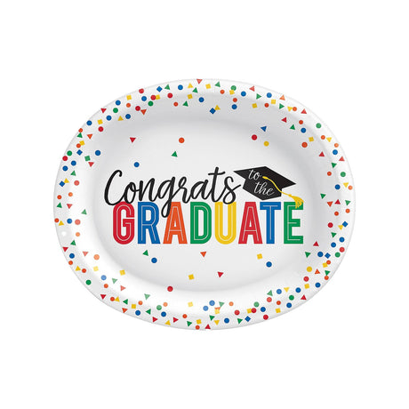 12" Black Grad Party Disposable Oval Paper Dinner Plates 20 Count