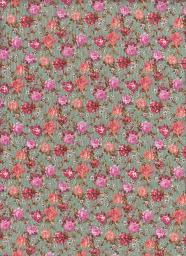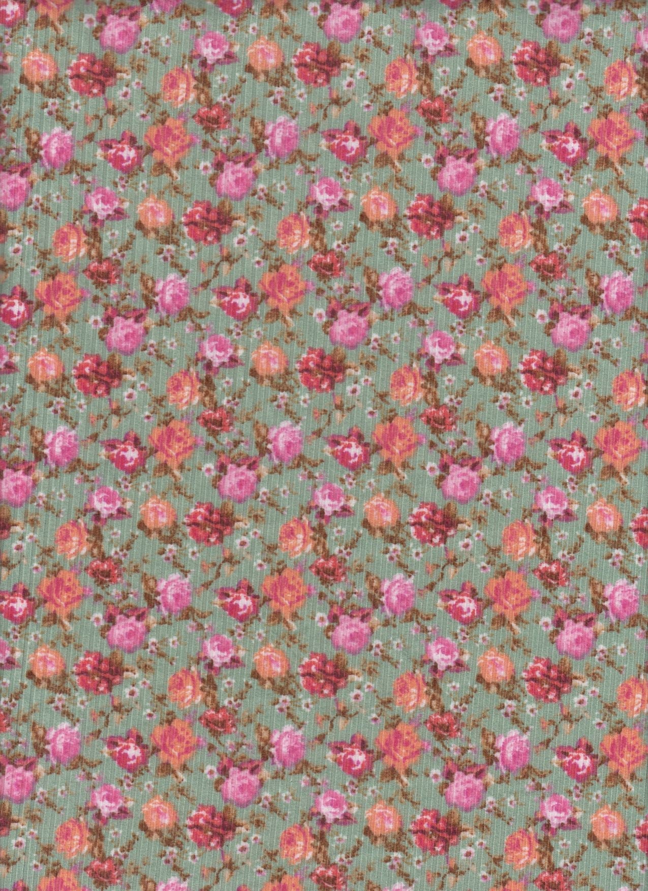 ১ গজ সুস্বাদু রিব ডিটসি ফ্লোরাল নিট ফ্যাব্রিক ১৭০ জিএসএম, ৫৮/৬০″ প্রশস্ত পলিয়েস্টার স্প্যানডেক্স ব্লেন্ড সেজ
