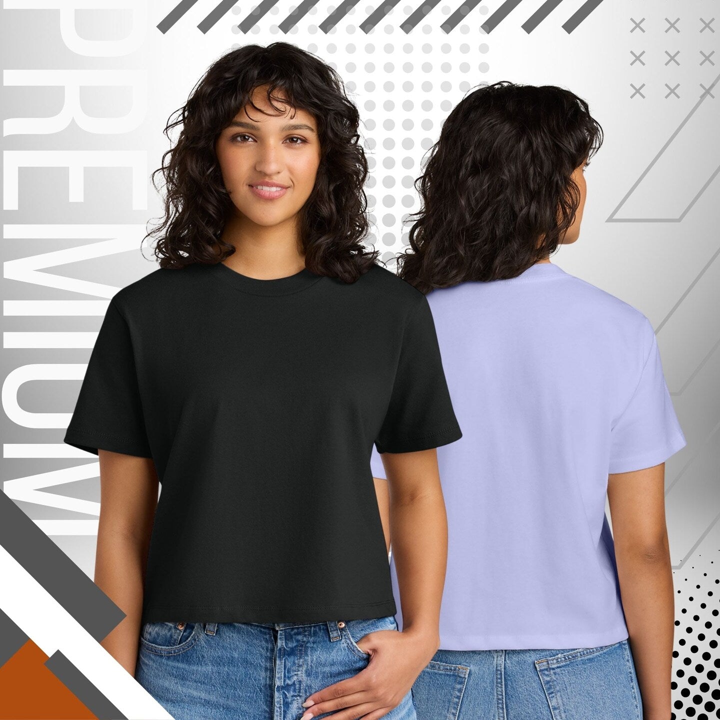The Next Level Apparel Womens Heavyweight Boxy Tee combines durability and comfort with a relaxed fit. Made from 6.8-ounce 100% combed ring-spun cotton (90/10 cotton/recycled polyester for Athletic Gray) with 16 singles, it features a 1x1 rib knit crewneck, shoulder-to-shoulder taping, side seams, and a tear-away label for irritation-free wear.