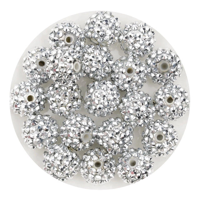 Acrylic Round String Bubblegum Bling Beads - Silver (5 Beads - 16mm)