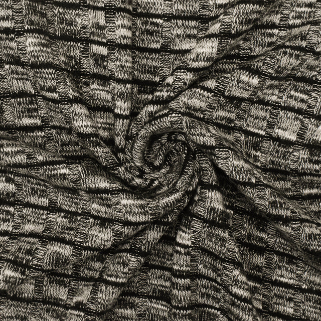 1 Yard Black & White Rib Knit Matte Poly Spandex Lightweight, Opaque 58" Wide