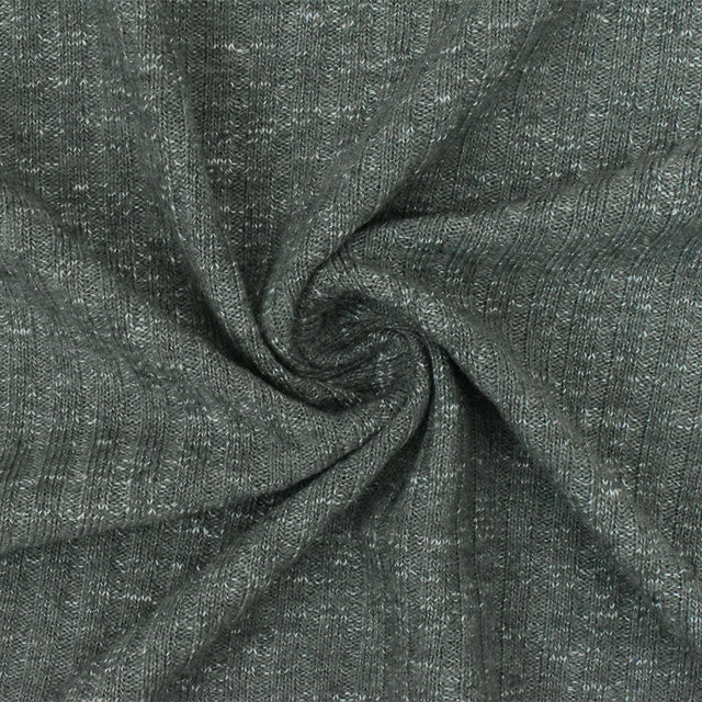 This lightweight to medium-weight 4x2 rib knit fabric offers a soft hand and textured pattern in charcoal gray and white. With four-way stretch, good drape, and a matte finish, it’s ideal for activewear, apparel, blouses, and dresses.