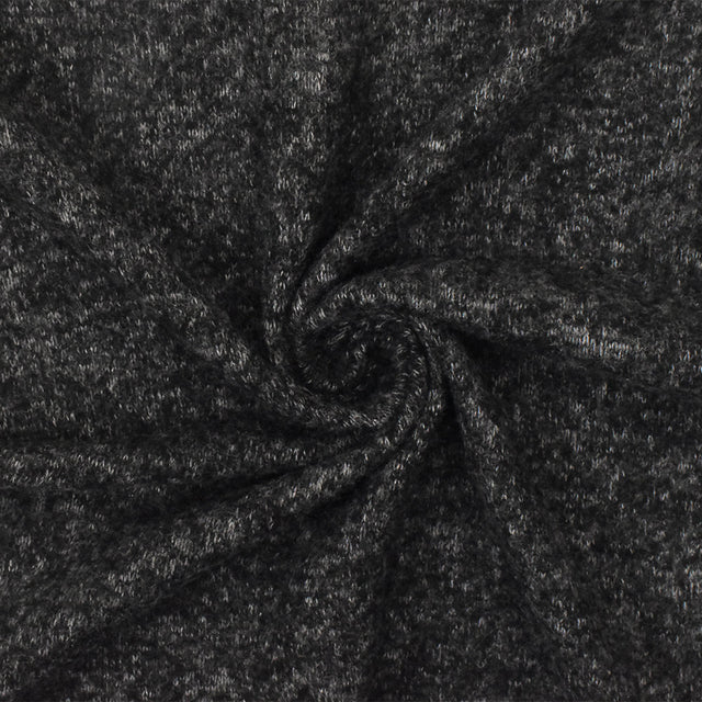 Soft, lightweight, textured stretch jersey knit fabric with a brushed back finish in light gray and black. Features four-way stretch, good drape, and a matte luster, perfect for activewear, apparel, blouses, and dresses.