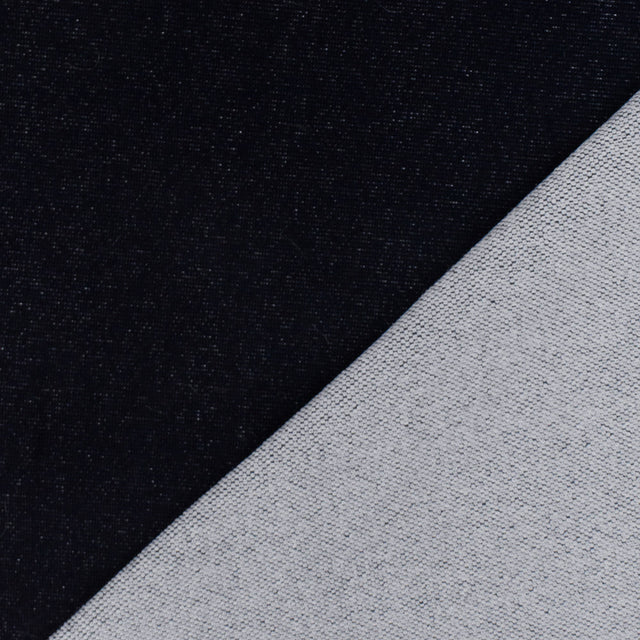 This Midnight Blue-White Texture Stretch Nylon Double Knit Fabric offers a unique faded navy blue face with a crisp white reverse, crafted from a soft nylon-spandex blend. With light to medium weight and four-way stretch, it provides excellent drape and comfort. Its matte finish and opaque nature make it perfect for activewear, apparel, dresses, and dancewear. Machine washable for easy care.