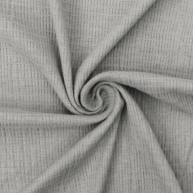 Experience the subtle texture and gentle colors of this Dusty Blue Gray White Slub Stretch Jersey Knit Fabric. Crafted from a soft blend of polyester, rayon, and spandex, this lightweight fabric offers comfortable horizontal stretch and an opaque finish.