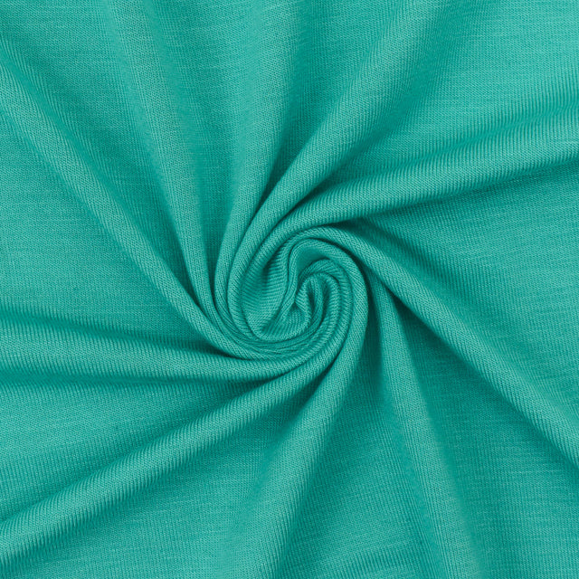 • Coral teal solid jersey knit fabric with a soft, modern finish, perfect for fashionable blouses, dresses, and activewear