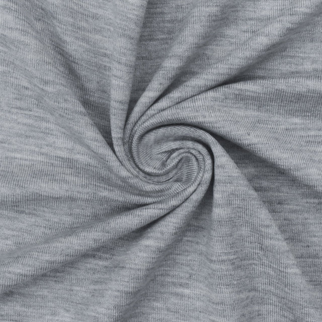This light blue, light gray, and white texture stretch spandex rayon modal jersey knit fabric is perfect for sewing modern blouses, dresses, and activewear that need both comfort and a unique look. Made from 94% rayon modal and 6% spandex, it features a soft hand, light weight, and an opaque, matte finish for a breathable and stylish feel. With four-way stretch and very good drape, this fabric is ideal for creating fitted or relaxed garments that move beautifully and offer a flattering silhouette. Enjoy the convenience of machine wash cold and air dry care, making it easy to keep your handmade pieces looking fresh and vibrant.