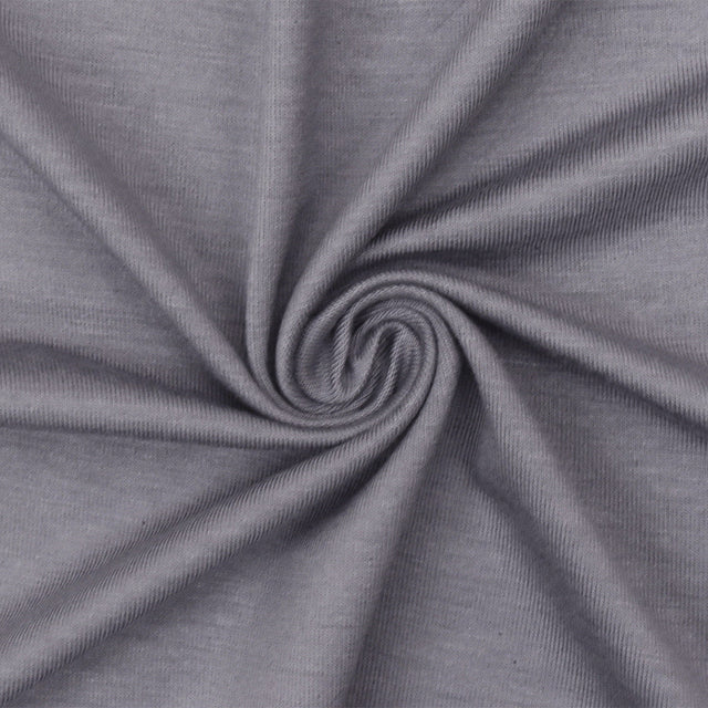 Achieve timeless style and comfort with this Gray Stretch Rayon Modal Jersey Knit Fabric. The neutral gray color pairs effortlessly with any wardrobe, while the fabric’s soft hand and matte finish add a polished, wearable look.