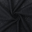 This black solid fabric is a soft polyester blend thermal sweater knit with four way stretch for versatile activewear and apparel projects. Its lightweight semi-sheer construction offers good drape and a matte finish, making it suitable for blouses, dresses, dancewear, overlays, and casual garments. The fiber content combines polyester, rayon, and spandex to ensure softness, durability, and comfortable stretch in every garment. Machine washable and easy to care for, this fabric is ideal for stylish and breathable clothing designs.