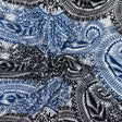 This navy blue white black lace border printed fabric is a soft polyester jersey knit with horizontal, slight vertical, and bias stretch, ideal for activewear and apparel projects. Its lightweight opaque construction offers very good drape and a low luster finish, perfect for blouses, dresses, and stylish garments. The fiber content of 95% polyester and 5% spandex provides comfortable stretch, durability, and softness in every garment. Machine washable and easy to care for, this fabric is perfect for elegant and breathable clothing designs.