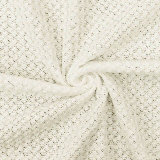 1 Yard Ivory Solid Stretch Poly Blend Thermal Waffle Knit Fabric, Perfect for Blouses, Dresses, and Layering Pieces 58" Width