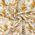 This yellow floral printed swimwear fabric is made from soft polyester spandex tricot knit with excellent four way stretch and durable construction. The light to medium weight fabric offers very good drape and opaque coverage, making it ideal for swimwear, activewear, blouses, and dresses. Its matte finish and soft hand provide both comfort and style, perfect for creating performance wear or everyday apparel. Easy to care for and machine washable, this stretch fabric is versatile for a variety of garment applications.
