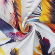 - White Purple Multi Leaves Printed Fabric Designed For Swimwear And Activewear Projects Featuring Vibrant Leaf Patterns And Durable Stretch Knit Construction