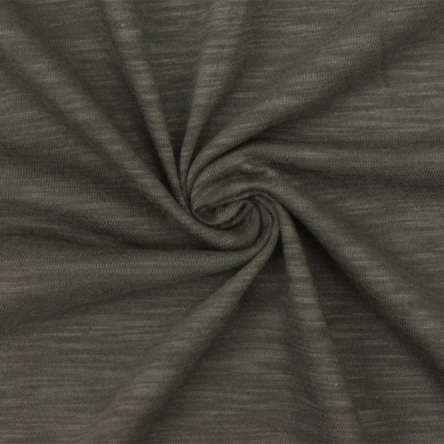 - Charcoal gray slub jersey knit fabric with a soft, semi-sheer finish, perfect for stylish dresses, overlays, and blouses