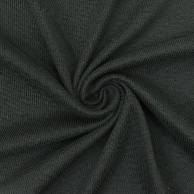 • Charcoal gray rib knit fabric with a soft, solid finish, perfect for fashionable activewear, blouses, and dresses