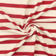 - Super red and ivory stripe jersey knit fabric with a soft, modern finish, perfect for stylish blouses, dresses, and activewear