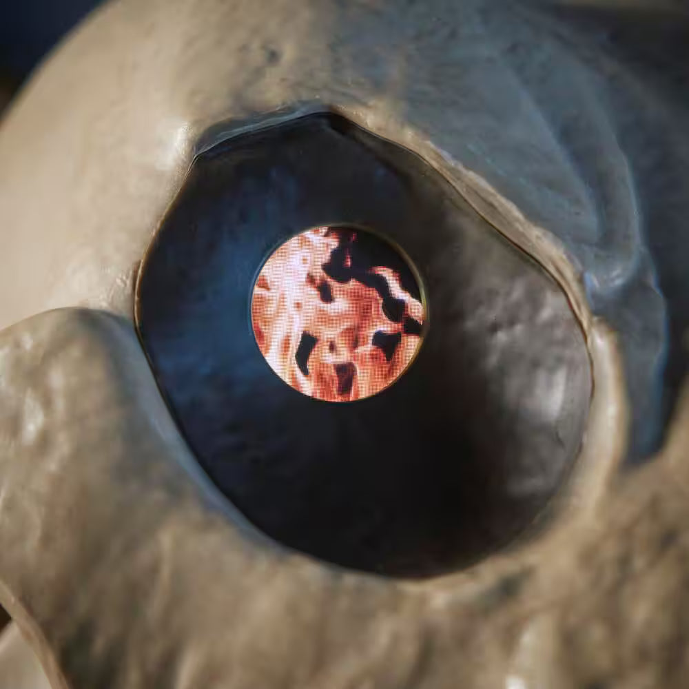 Add a loyal spooky companion to your Halloween setup with the 5-foot Grave & Bones Skelly’s Sitting Dog featuring LifeEyes LCD technology. Its eyes move and blink with eight selectable animations, including hearts, fireworks, and flames, while the poseable mouth can be adjusted for extra realism. Crafted with durable metal frame and realistic sculptural detail, this animatronic Doberman is perfect for indoor or outdoor displays. Easy one-person assembly, plug-in adapter, eye remote, and timer function make it an interactive and eye-catching addition to any haunted scene.