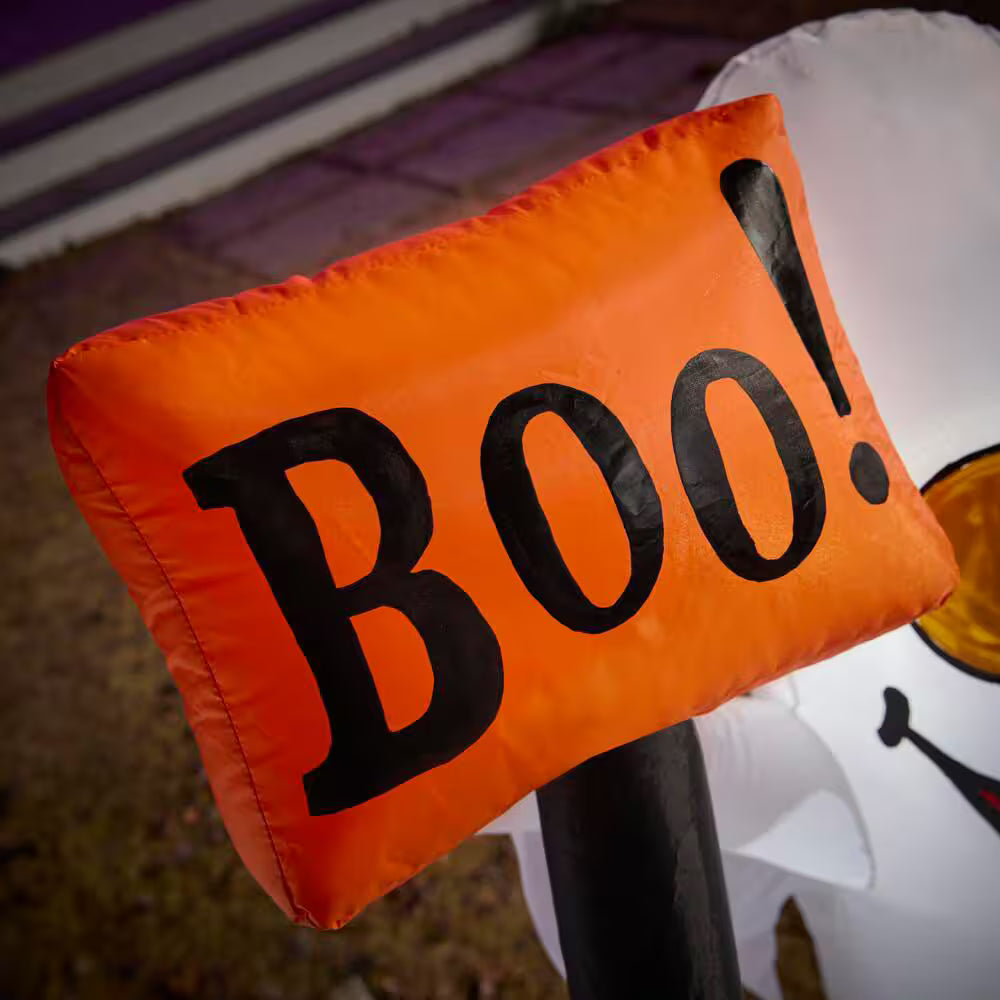 Welcome guests and trick-or-treaters with the LED Airblown Ghost Scene Halloween Inflatable. Featuring five playful ghosts holding a “Boo!” sign, this decoration lights up with bright, energy-efficient LEDs to create a fun and spooky atmosphere. Self-inflating in seconds and deflating for easy storage, it includes stakes and tethers for quick and secure setup. Perfect for indoor or outdoor use, this ghost scene adds a whimsical yet haunting touch to any Halloween display.