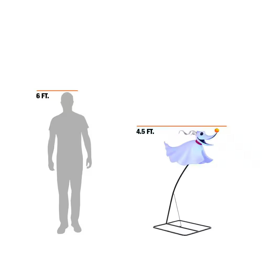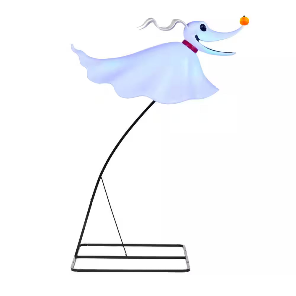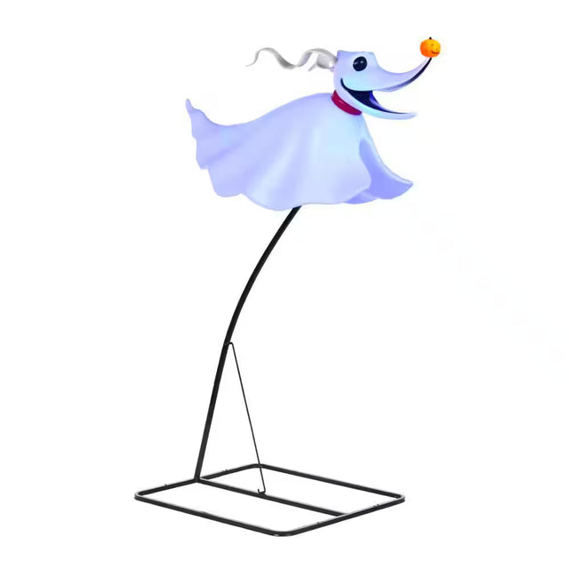 Bring a ghostly glow to your Halloween with the 4.5-foot LED Zero Halloween Decoration. This beloved Nightmare Before Christmas character lights up with a bluish body glow and an orange pumpkin nose that shines bright. Designed with realistic sculptural detail, Zero looks as if he’s floating in mid-air, creating a whimsical yet eerie effect. Perfect for indoor or outdoor displays, this piece also makes a wonderful gift for any Disney fan.