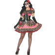 Embrace the spirit of Halloween with our stunning Day Of The Dead Senorita Costume. This eye-catching outfit features a beautiful pink dress adorned with sugar skull accents, a striking black lace-up corseted bodice, and a playful short ruffled skirt. Perfect for making a dramatic entrance at any costume event, this sultry ensemble balances beauty with a hint of sinister charm.
