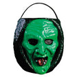 Crafted from durable blow mold plastic, this 9" tall candy pail brings the classic Don Post Witch Mask to life in retro style. This Witch Candy Pail features painted details and a flexible plastic handle making it perfect for trick or treating.