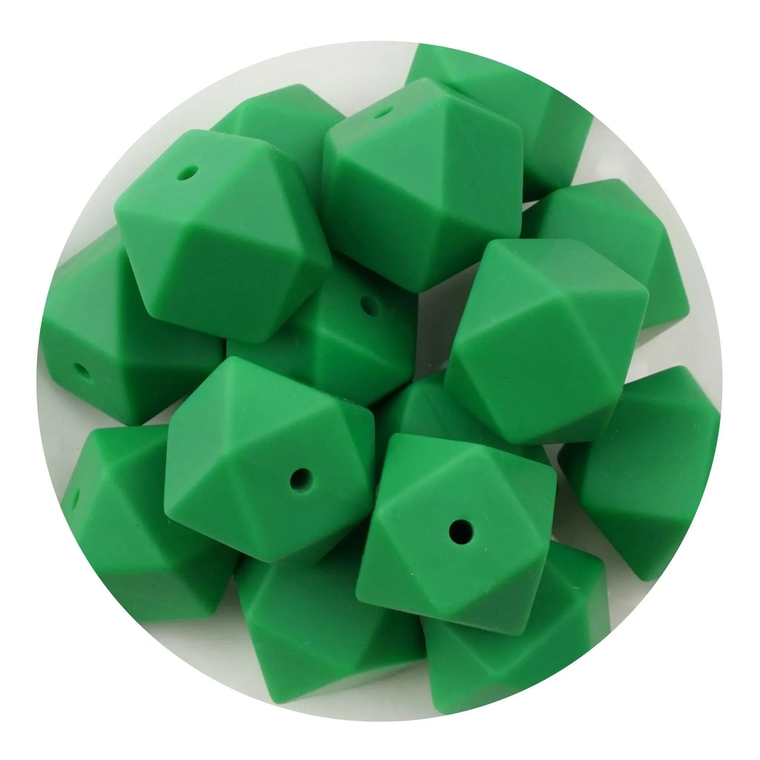 Silicone Bead Hexagon - Green (5 Beads - 14mm)