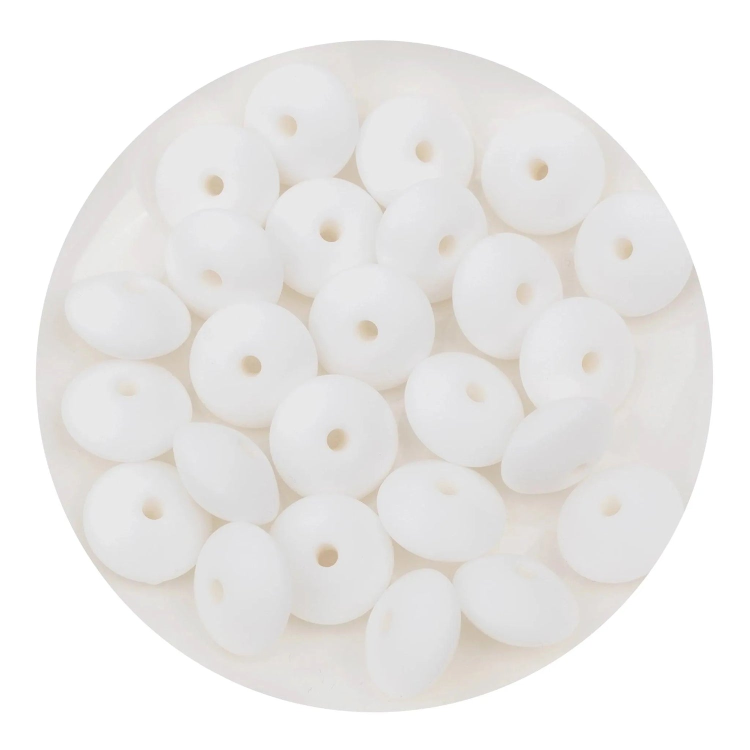 Silicone Bead Lentil Disc - Snow (5 Piece - 15mm)
