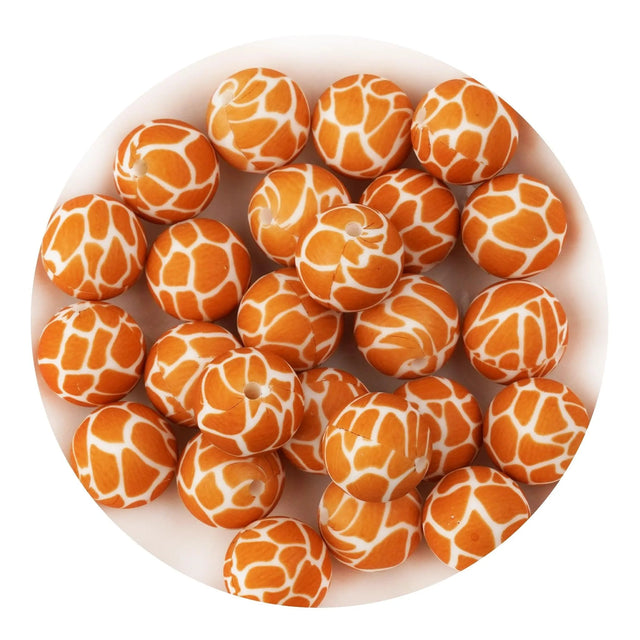 Silicone Bead Round - Giraffe (5 Beads - 15mm)
