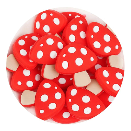 Silicone Focal Bead Mushroom - Red (5 Beads)