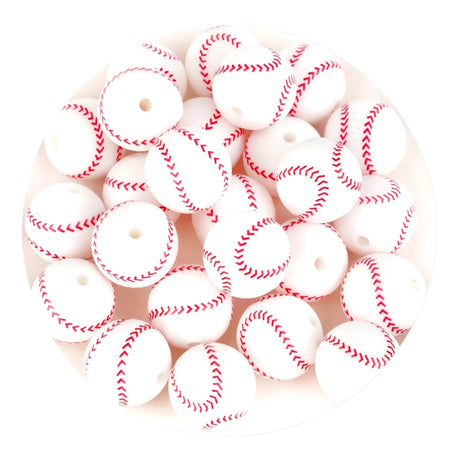Silicone Focal Bead Round Baseball - White (5 Beads - 12mm)