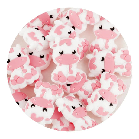 Silicone Focal Bead Cow - Pink (5 Beads)