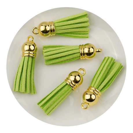 Keychain Tassel Gold Ring - Green (5 per Bag - 1.4" Long)