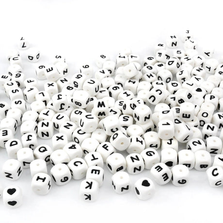 Letter & Number Square Silicone String Beads - White & Black (5 Beads - Letter A 12mm)