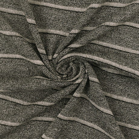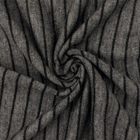 1 Yard Dark Gray & Black Stripe Jersey, Soft Poly Spandex Knit, 59" Wide