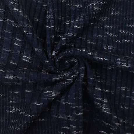 1 Yard Dark Navy & White Slub Rib Knit, Diagonal Texture Stretch Fabric for Apparel, 62" Wide