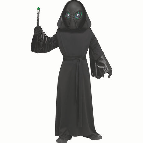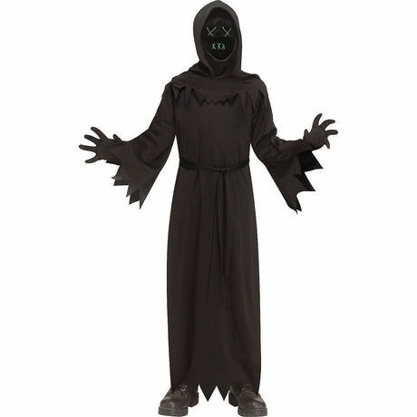 Kids Black Polyester Robe with Electro-Luminescent Mask for Halloween Parties and Sci-Fi Events