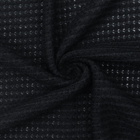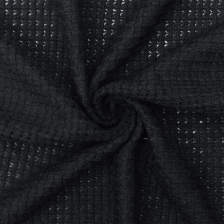 1 Yard Black Solid Stretch Poly Blend Mesh-Like Thermal Sweater Knit Fabric 58" Width