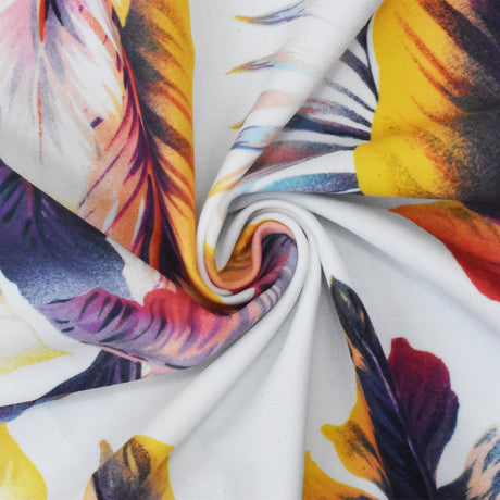 1 Yard Black White Orange Floral Printed Stretch Poly Spandex Mesh Knit Fabric 58" Width