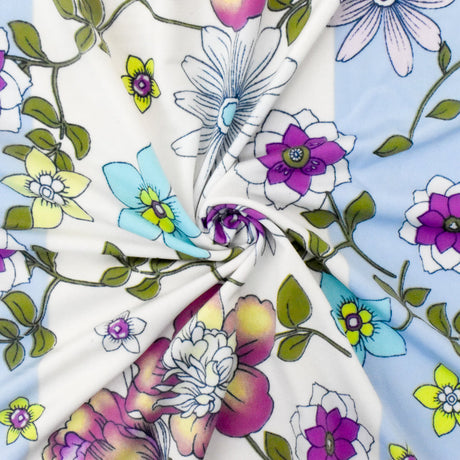 1 Yard Angel Blue Purple Multi Floral Printed Stretch Poly Swimwear Knit Fabric 58" Width