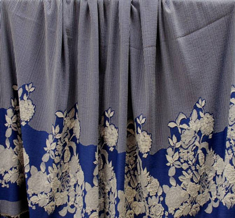 1 Yard Yoryu Jacquard Fabric Denim Blue Rayon Crinkled Lightweight Apparel Material 55 56 Inch Width