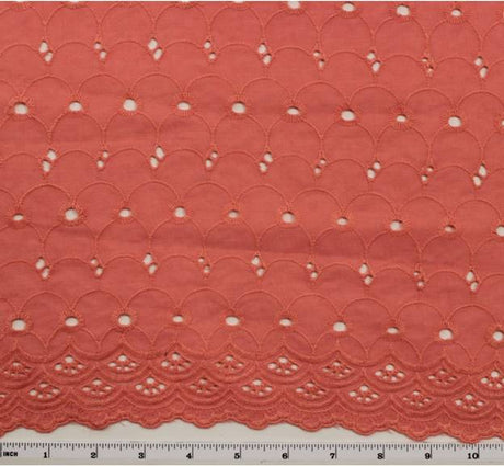 1 Yard Coral Eyelet Embroidery Fabric Cotton Polyester Lightweight 41/42 Inches Wide