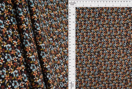 1 Yard Yummy Rib Ditsy Floral Knit Fabric 170 GSM, 58/59'' Wide Polyester Spandex Blend Black