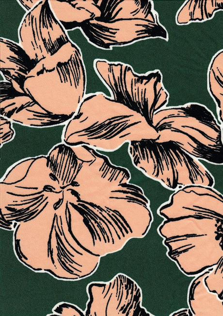 1 Yard DTY Floral Print Knit Fabric 180 GSM, 58/60'' Wide Polyester Spandex Blend Pink Green