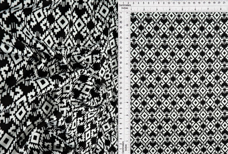 1 Yard DTY Geo Print Knit Fabric 190 GSM, 58/60'' Wide Polyester Spandex Blend