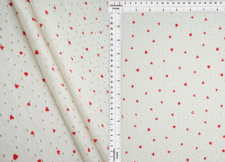 1 Yard Jacquard Eyelet Heart Knit Fabric 190 GSM, 58/60? Wide Polyester Spandex Blend Ivory/Red